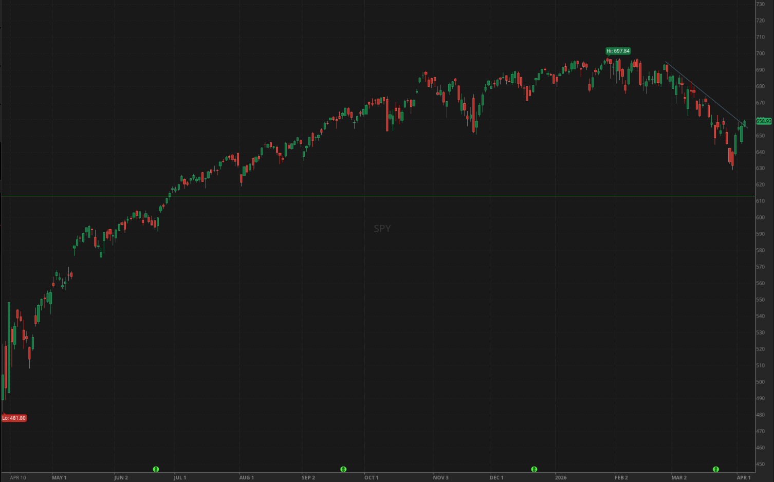 Last Thursday, front-month crude oil futures surged from $99 to $111 as geopolitical threats intensified. That has historically been a recipe for a broad equity market sell-off. Instead, we saw the dip bought, which came after a massive bid to end the first quarter. Maybe it was driven in part by quarter-end rebalancing and subsequent positioning, but whatever the catalyst, SPY and QQQ defied the energy drag and finished the week up 4.3% and 5.4%, respectively.