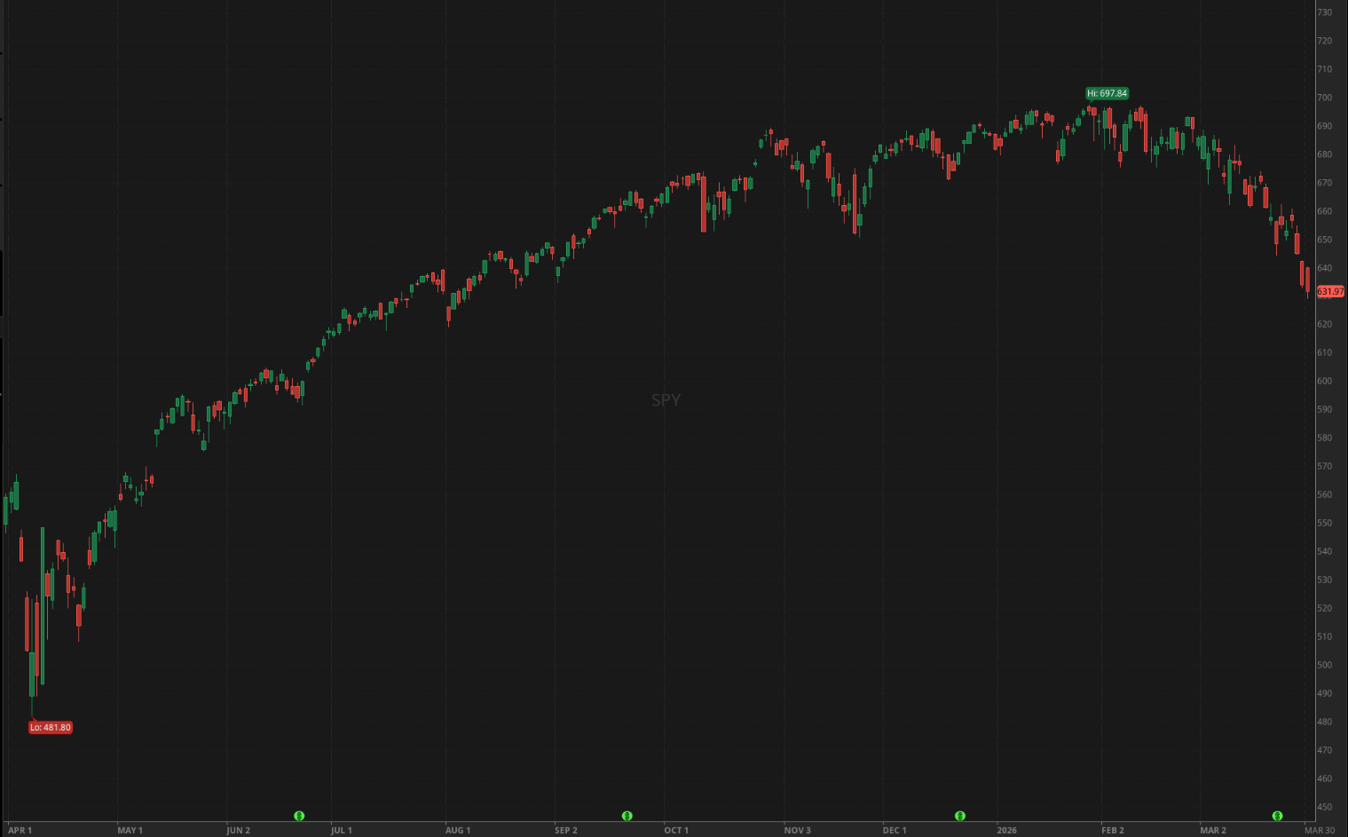 The pattern has been consistent: early-week strength fades into midweek drift, followed by late-week selling. Thursday and Friday both opened with gaps lower and closed near intraday lows. With geopolitical headlines accelerating, holding risk into the weekend continues to feel less attractive.