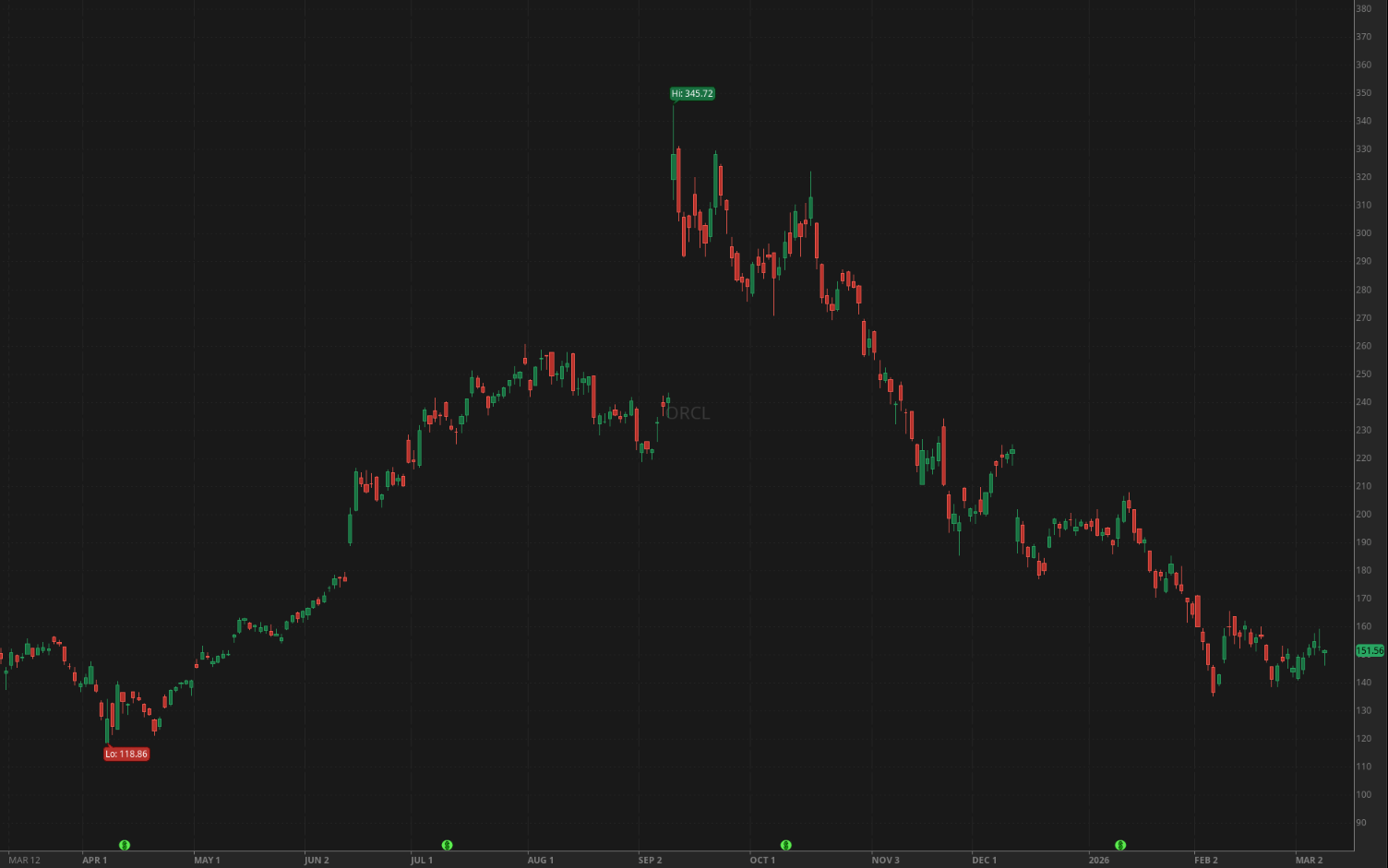 Daily chart of ORCL over 1Y time interval