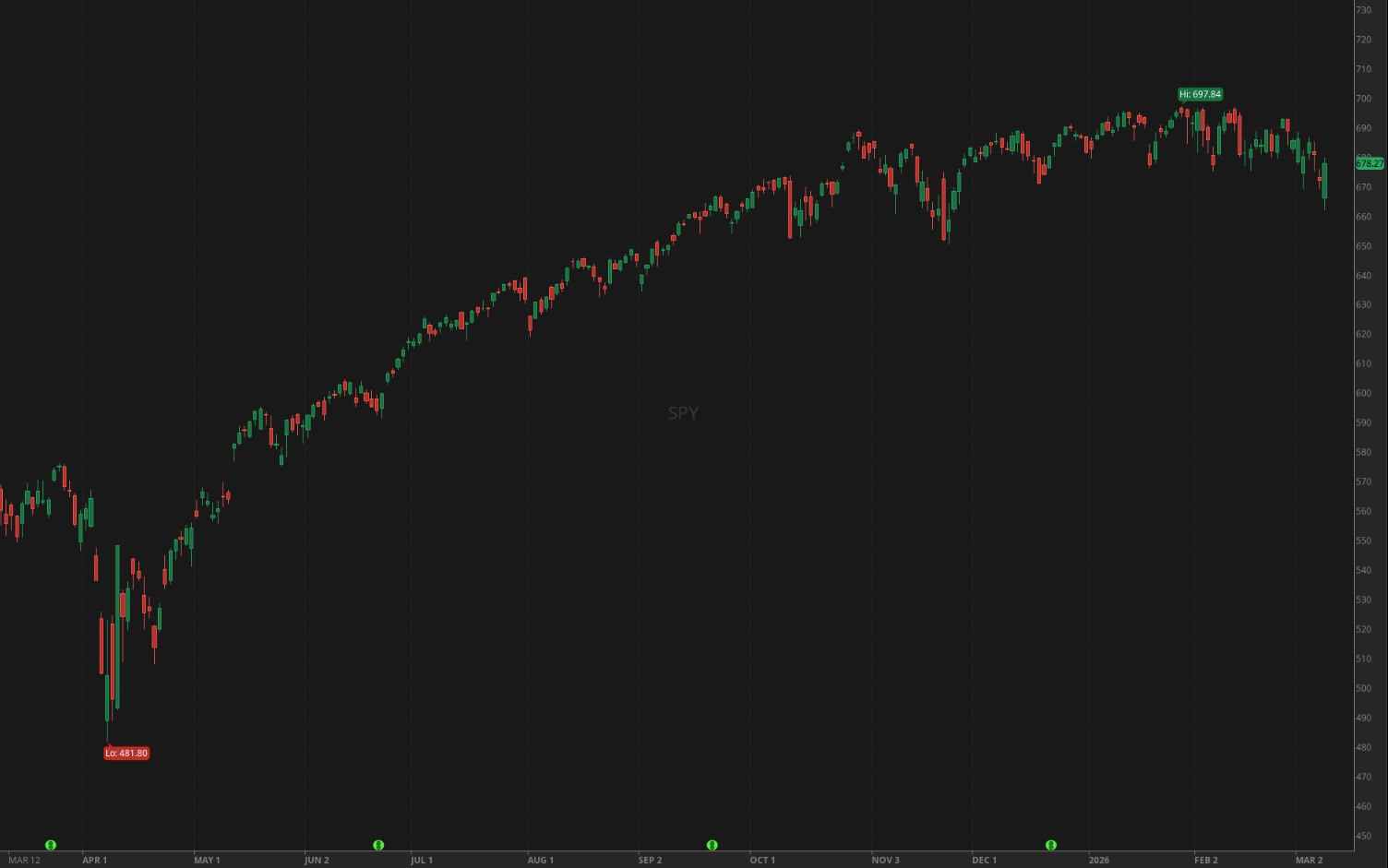 Daily chart of SPY over 1Y time interval